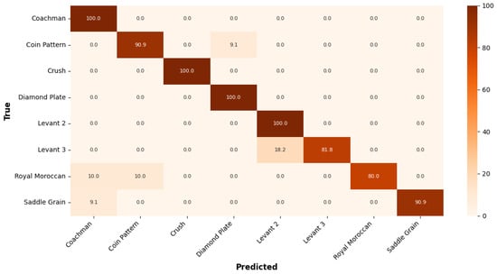 Royal Moroccan class. Overall, the model demonstrates high recognition capability with only minor confusion between certain texture types.