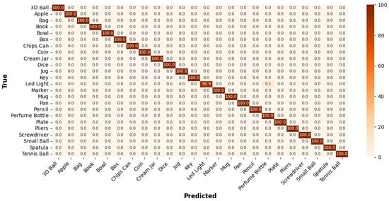 Led Light shows the lowest accuracy at 90.0%, often being misclassified as