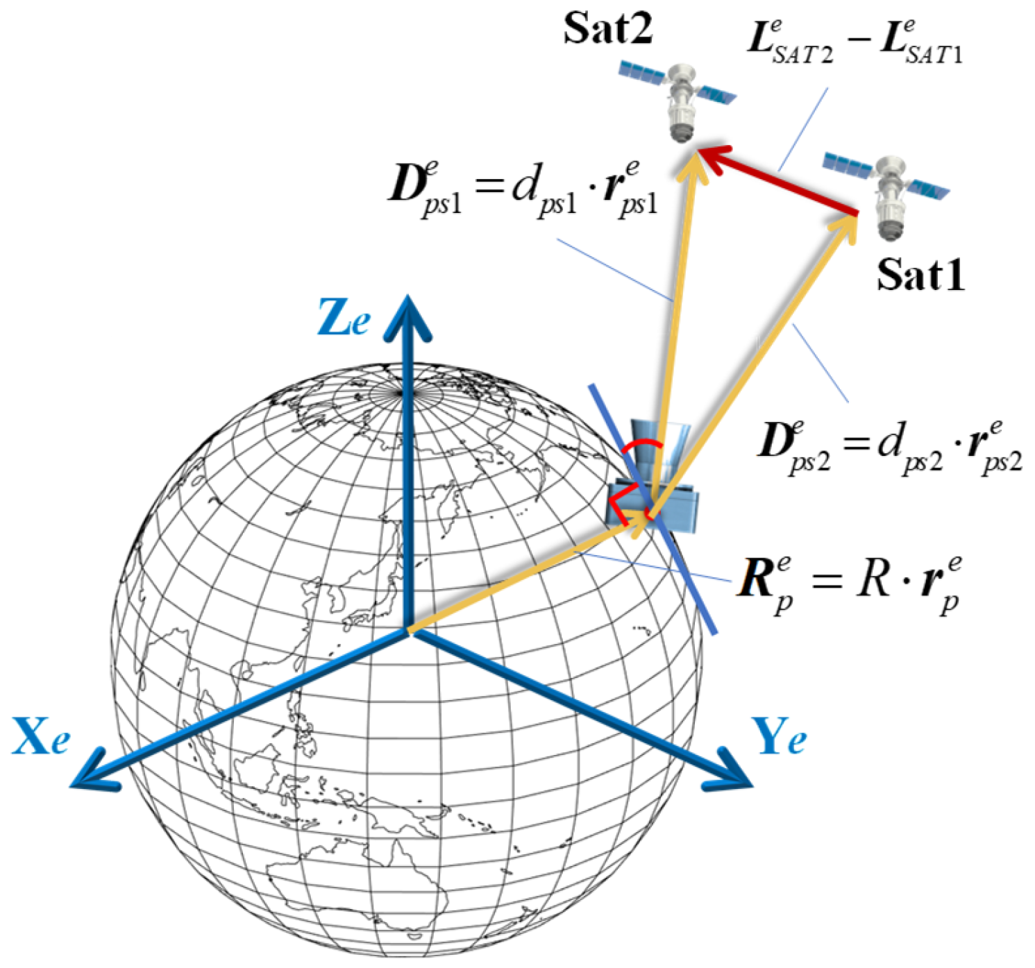2.1. Angles-Only Navigation Based on Optical Observation of the Satellite