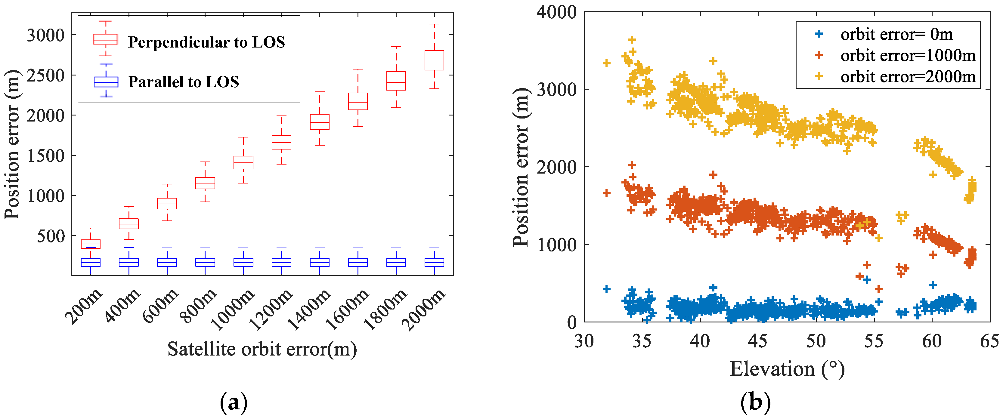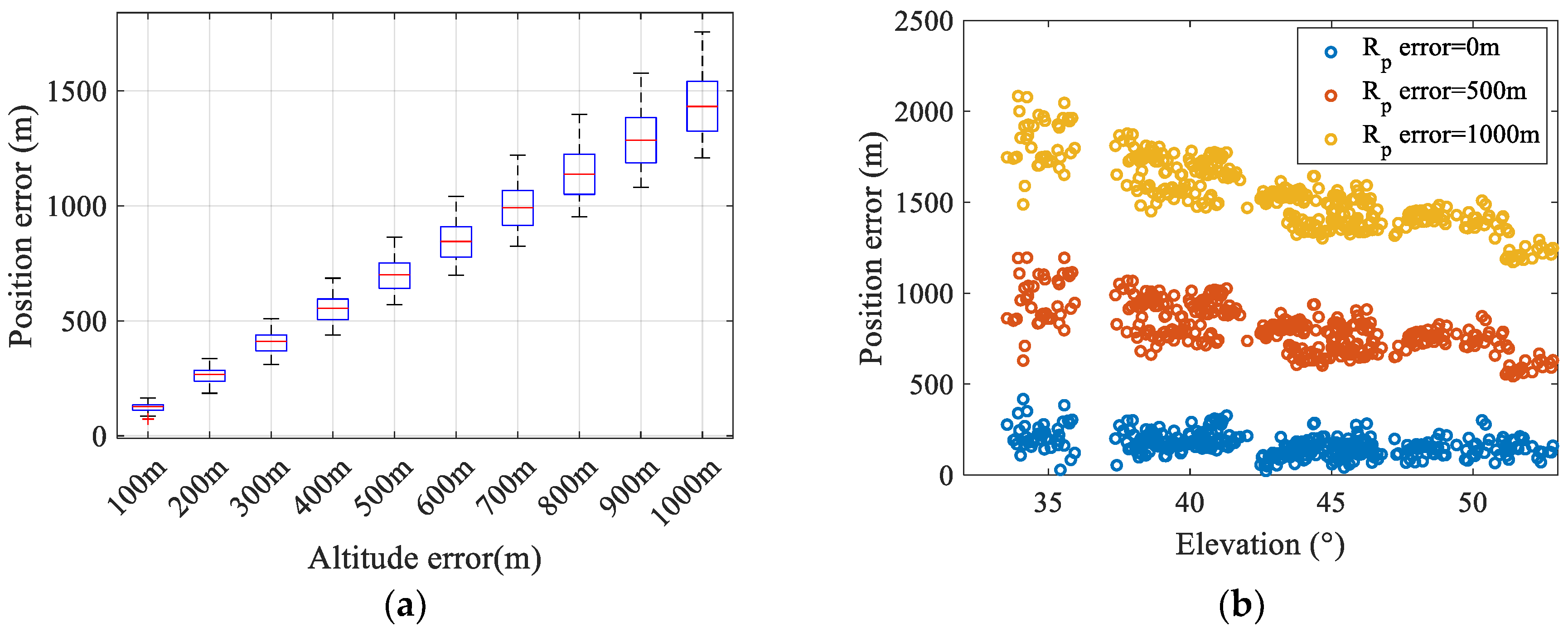 4.3. Positioning Error Induced by Altitude Error of Observer