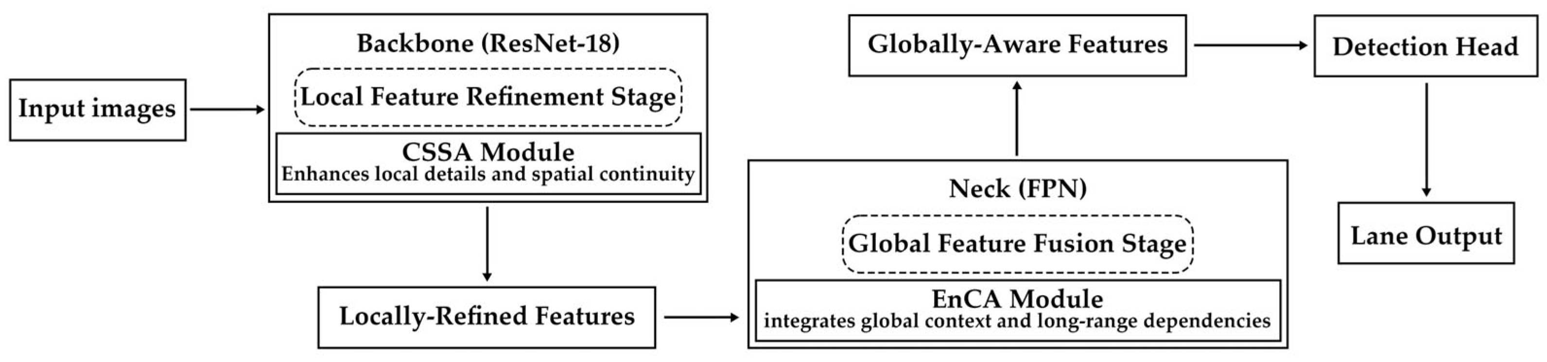APA StyleZhang, B., Zhang, L., Wang, T., Wei, Y., Chen, Z., & Cao, B. (2025). Omni-Refinement Attention Network for Lane Detection. Sensors, 25(19), 6150. https://doi.org/10.3390/s25196150
