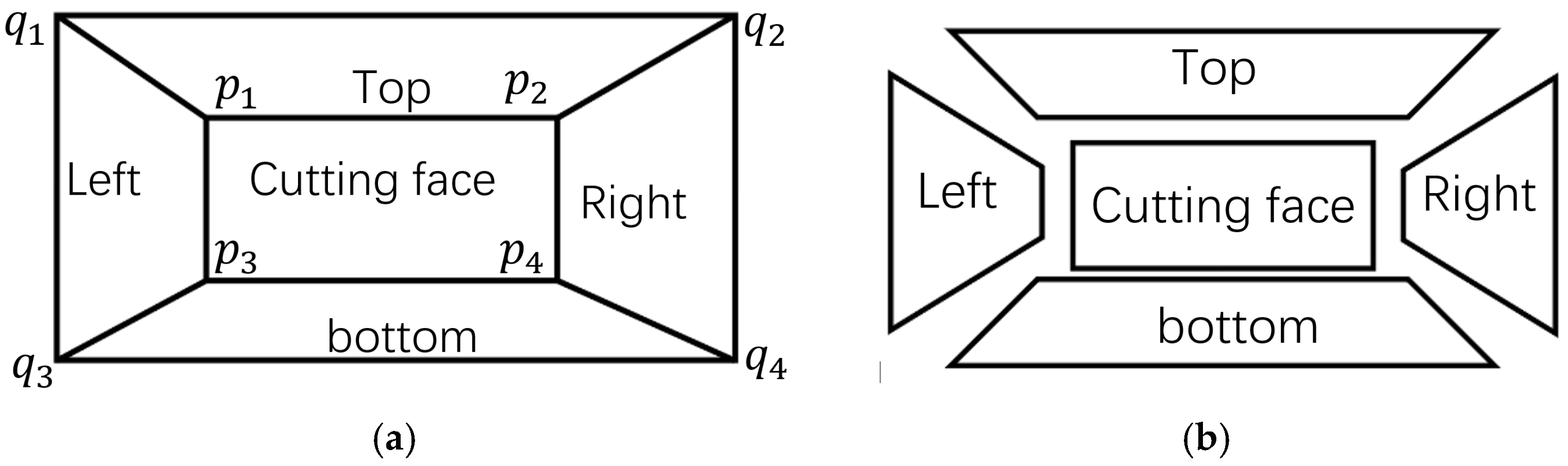 q1q2q3q4 parallel to the cutting face