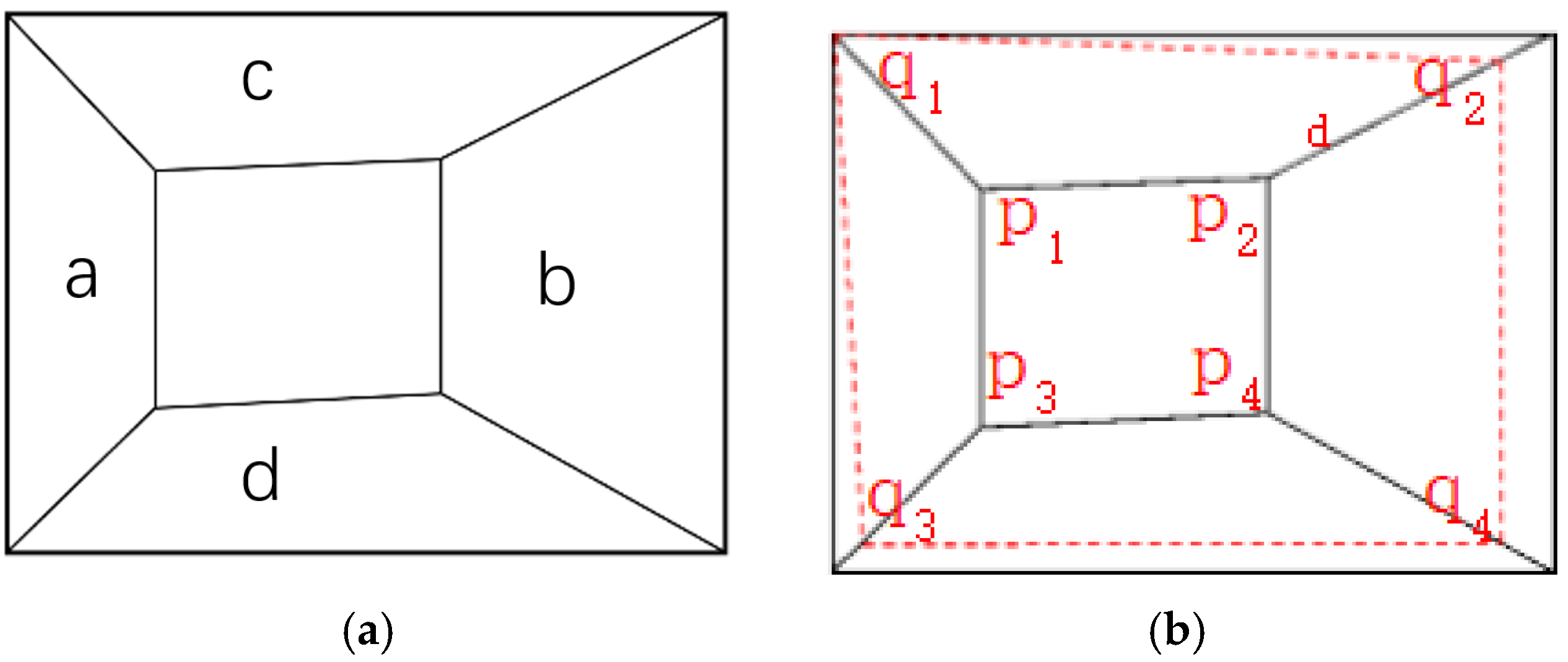 Figure 2b can be realized. The tunnel image is segmentate into five regions based on the connecting lines.