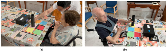 Although it will be explained in more detail later, PACTUS 2.0 consists of a set of colored cards that can be arranged in different configurations. These cards replicate the therapeutic movements that a patient must perform. The user can interact with the SG by using a sensorized handle to recognize each color. This flexibility offered by PACTUS 2.0, when configuring the game board, represents a step forward compared to other gamified systems reviewed in the literature (Section 2.1). Not only because of the flexibility, but also because of the customization it provides therapists, allowing them to adapt the game board according to the specific movements each patient actually needs. By combining colors in different configurations, the system makes it possible to program transversal, longitudinal, opening, or closed-loop movements (among those considered the most appropriate) tailored to the physician’s recommendations. Thus, without changing the essence of the game (thus eliminating the added difficulty of requiring the patient to learn new internal game rules), the patient can interact with the same game in different ways.