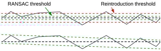 In [12,13], experiments with full-size helicopters and 3D lidars were conducted. The landing-site assessment was split into two stages. First, laser points were classified according to clearance, slope, and overhead space; then the skid geometry of the airframe was numerically fitted to the terrain to confirm compatibility. Another lidar-centric paper proposed a quality-weighted version of RANSAC that speeds up plane extraction by about 30%, although the algorithm was validated only on archival datasets [14].