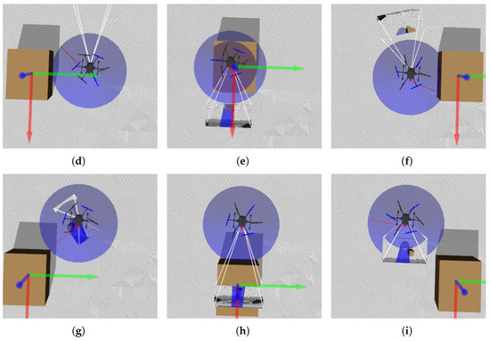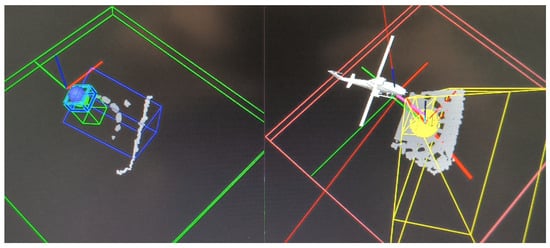 Currently, all obstacles are treated as static—no segmentation or motion modeling is used. Nevertheless, the system can still respond to dynamically occurring obstacles. Collision avoidance checks for any points present in the flight corridor, and scanning is always active during flight. As shown in the simulation intrusion tests, the UAV can abort the landing procedure when an obstacle appears. Future work on collision avoidance will focus on flight path planning in denser environments and improved obstacle shape analysis.