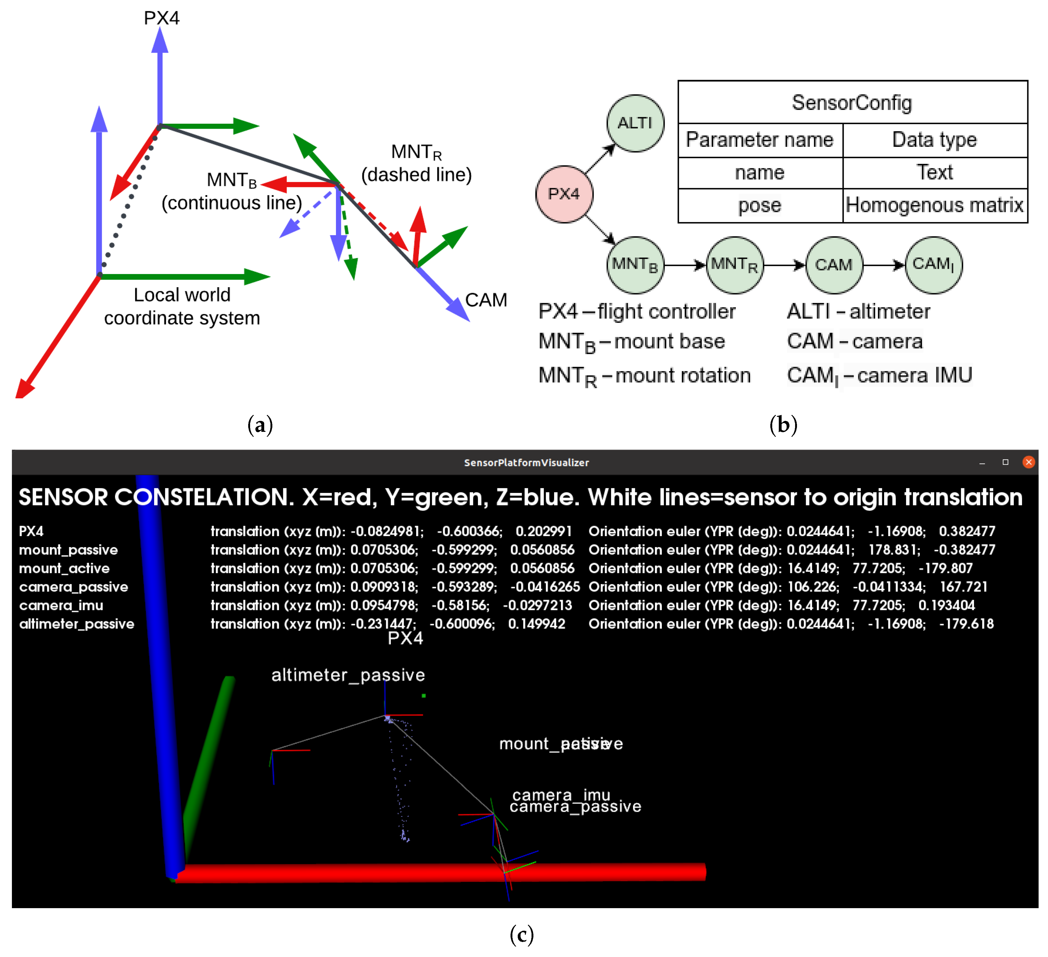 - Flight controller stability: The flight controller, equipped with redundant IMUs, compass, and barometer, performs pose estimation using EKF and provides a stable base pose. The rest of the UAV is treated as a rigid chain. Yaw drift was minimal and did not cause issues. If yaw drift occurs, it can be minimized through manufacturer-recommended calibration procedures, including thermal calibration of IMUs.