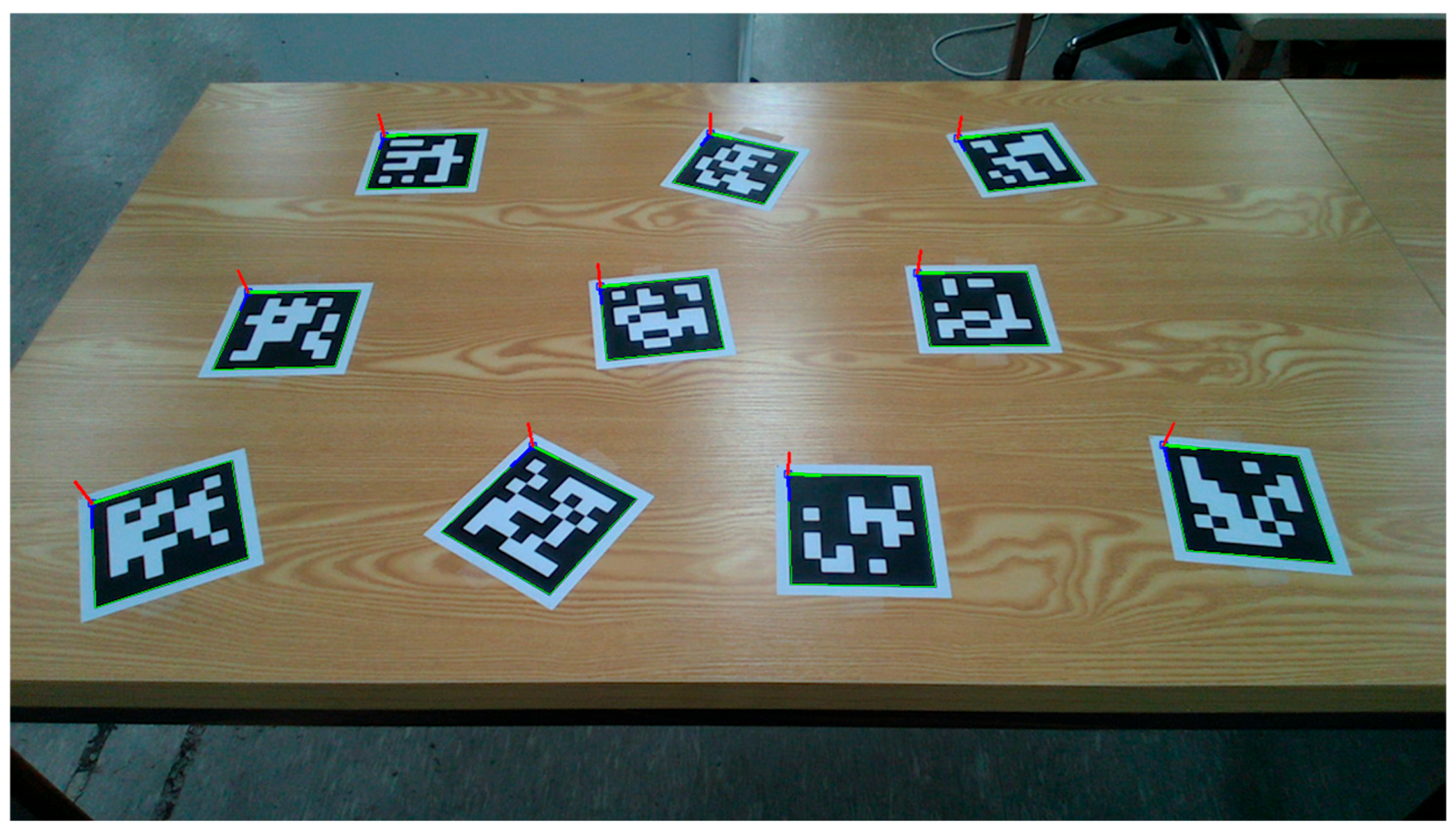 To evaluate the estimation model’s ability to simultaneously estimate the poses of multiple objects, we conducted an experiment in which we placed 10 ARUCO markers arbitrarily on a table. Then, we computed the ground-truth poses based on the markers’ spatial configuration, as shown in