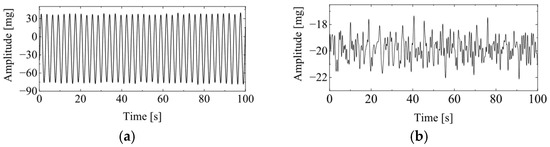 Typical vibration signals for VIV and ambient vibration. (a) VIV signal; (b) ambient vibration signal.