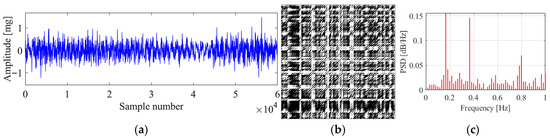Original data, recurrence plot, and PSD plot for region 3. (a) Original data; (b) recurrence plot; (c) PSD plot.