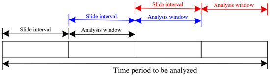 In real applications, the VIV identification is expected to be operated online and in a continuous way to fulfill the online continuous identification and warning system. The moving window strategy is the optimal way to fulfill the online identification. In the moving window strategy, the analysis window and the slide interval are two parameters that need to be carefully set. The analysis window means the time period of the data to be analyzed and the slide interval means the time period of the data moves forward after each analysis. The principle of analysis window and slide interval is presented in Figure 24. It can be seen from the figure that the slide interval is suggested to be set the same as the analysis window. Under these circumstances, all the collected data would be analyzed without any overlapping.