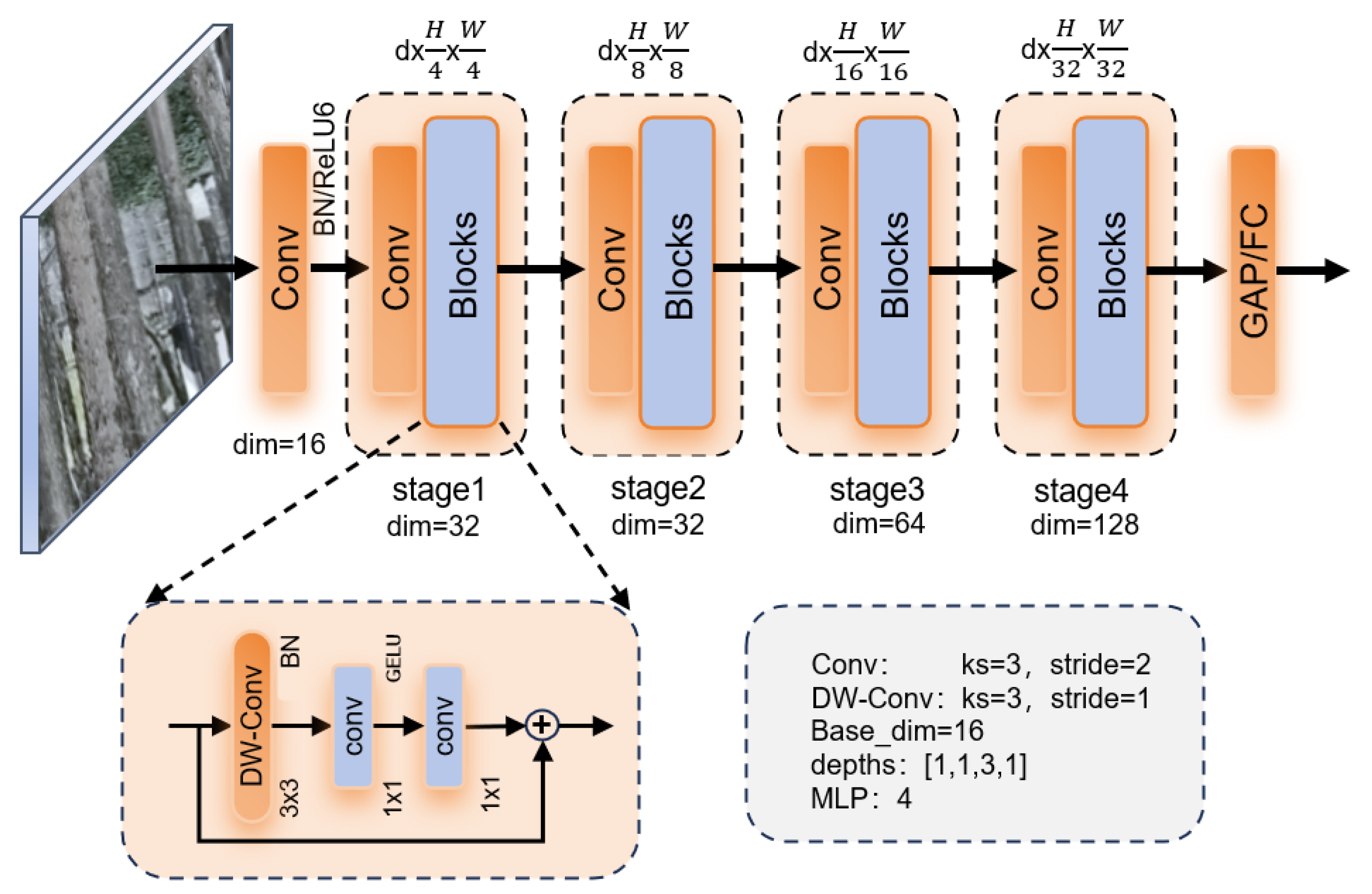 - Addressing the challenge of balancing lightweight design with feature representation power [10,11,12], we innovatively propose the StarNet_Trunk backbone network. This architecture replaces traditional residual connections with element-wise multiplication and integrates 3 × 3 depthwise separable convolutions. This design significantly reduces computational complexity and parameters while maintaining a large receptive field, thereby achieving efficient and robust trunk feature extraction without compromising the model’s capacity.