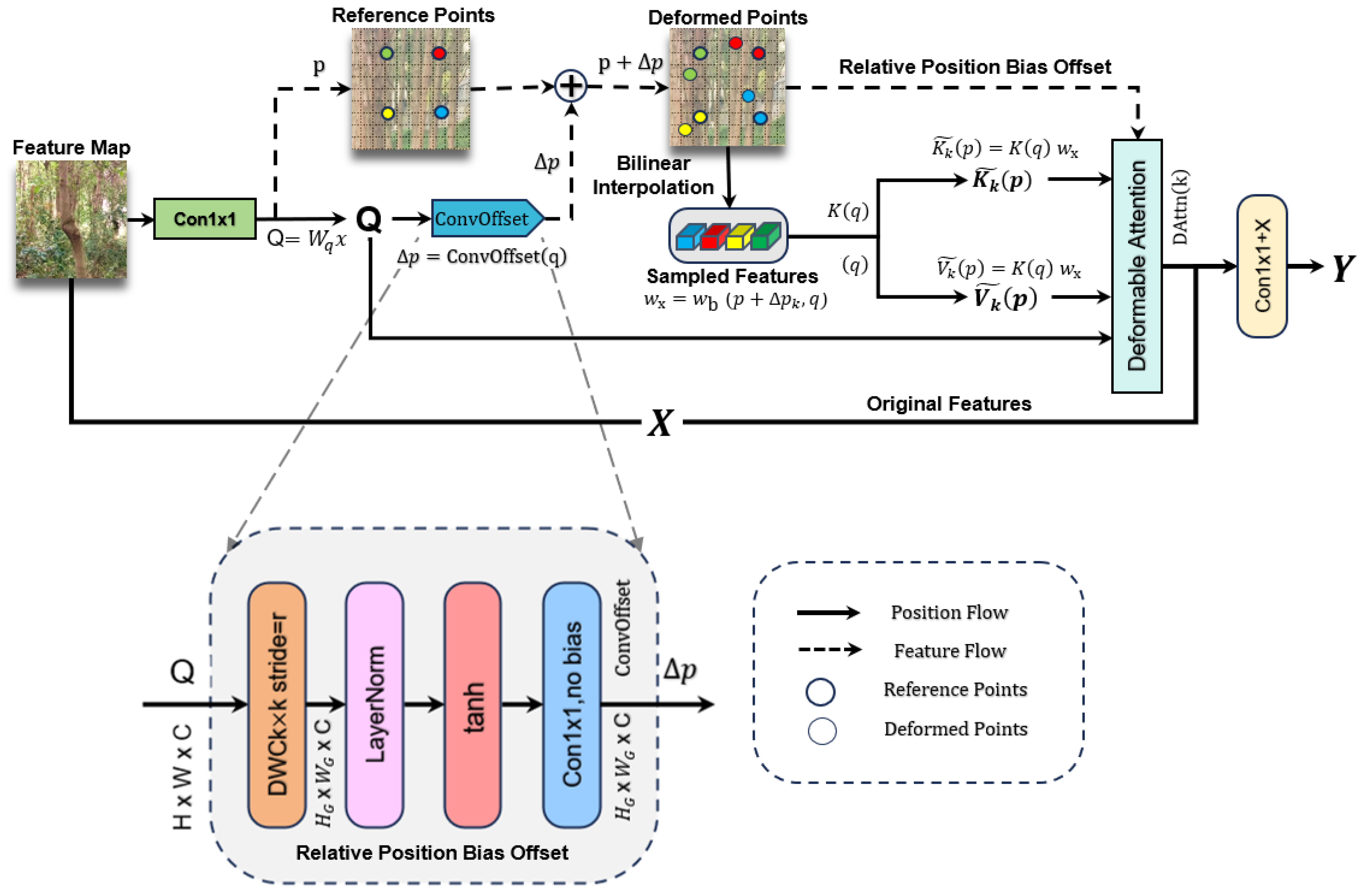 - Xia, Z.; Pan, X.; Song, S.; Li, L.E.; Huang, G. Vision Transformer with Deformable Attention. In Proceedings of the 2022 IEEE/CVF Conference on Computer Vision and Pattern Recognition (CVPR), New Orleans, LA, USA, 18–24 June 2022. [Google Scholar] [CrossRef]