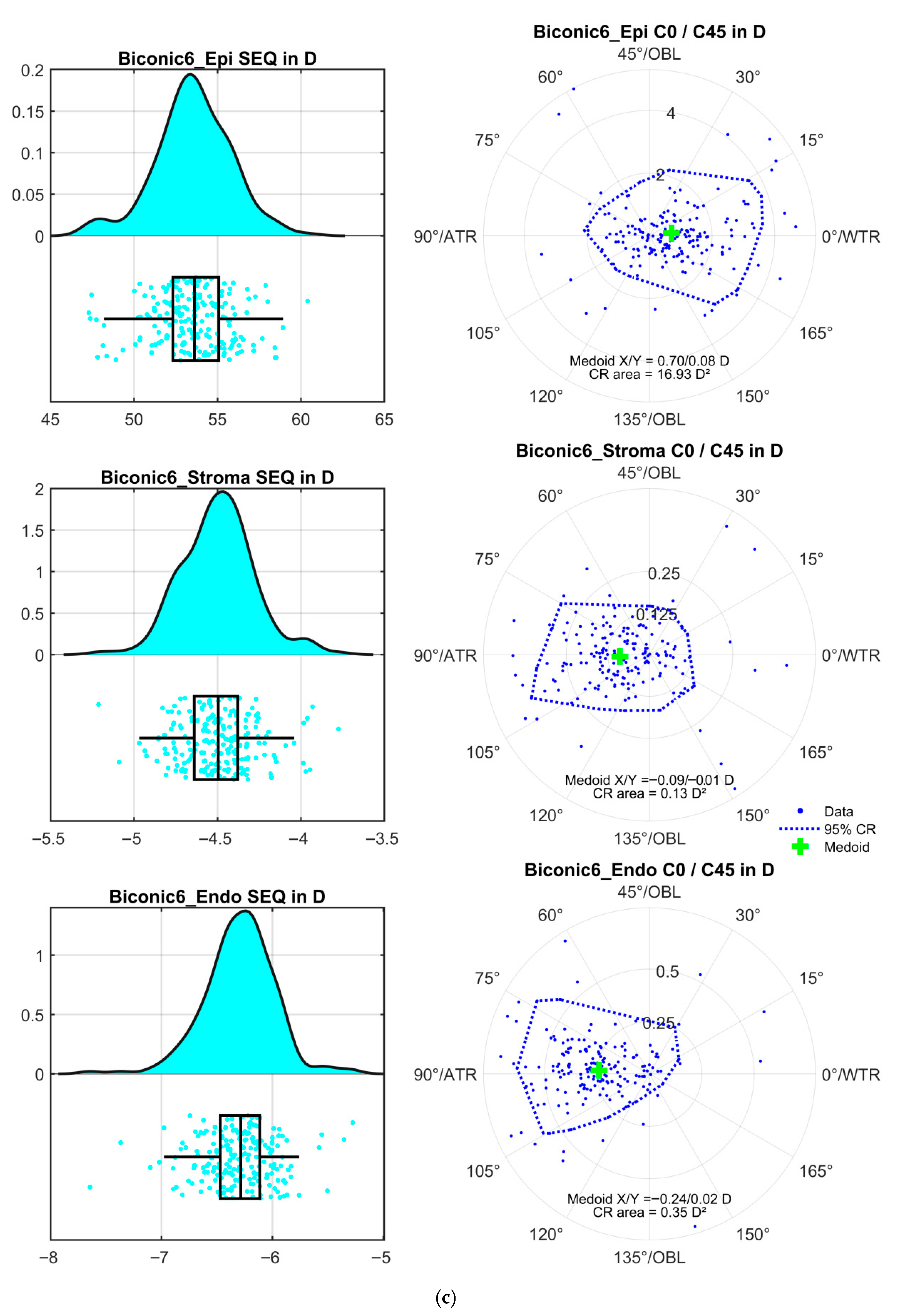 | Mean value of the 3 repeat measurements | ROI = 3 mm | SphCyl3 | CylConoid3 | Biconic3 | ||||||