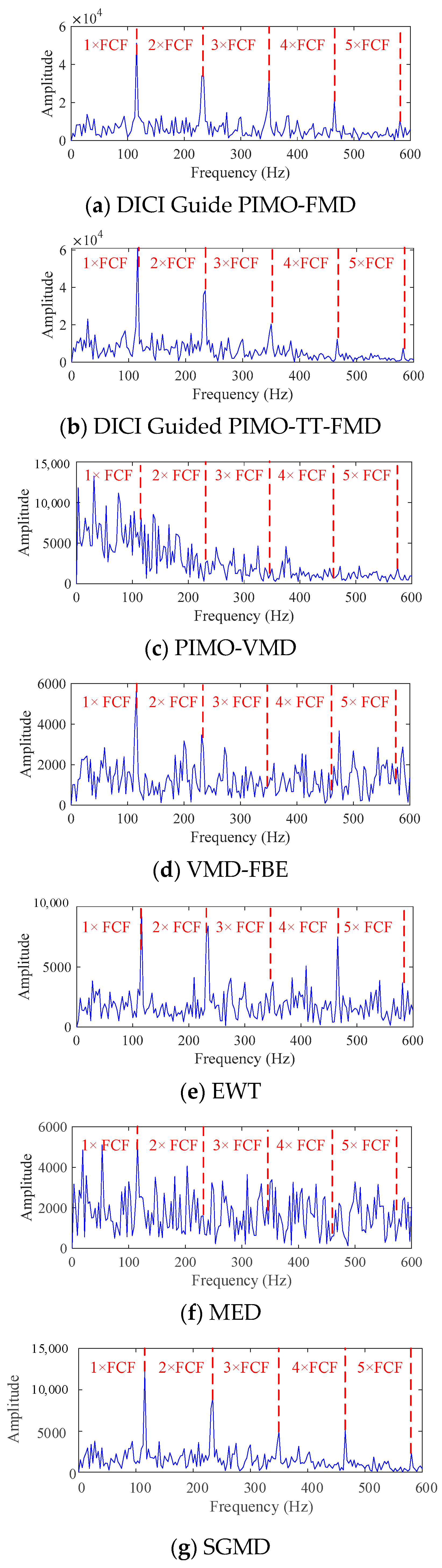- Step 3: Reconstruct the signal using FFC and calculate its envelope spectrum, and then complete the diagnosis based on the obtained fault frequency.
