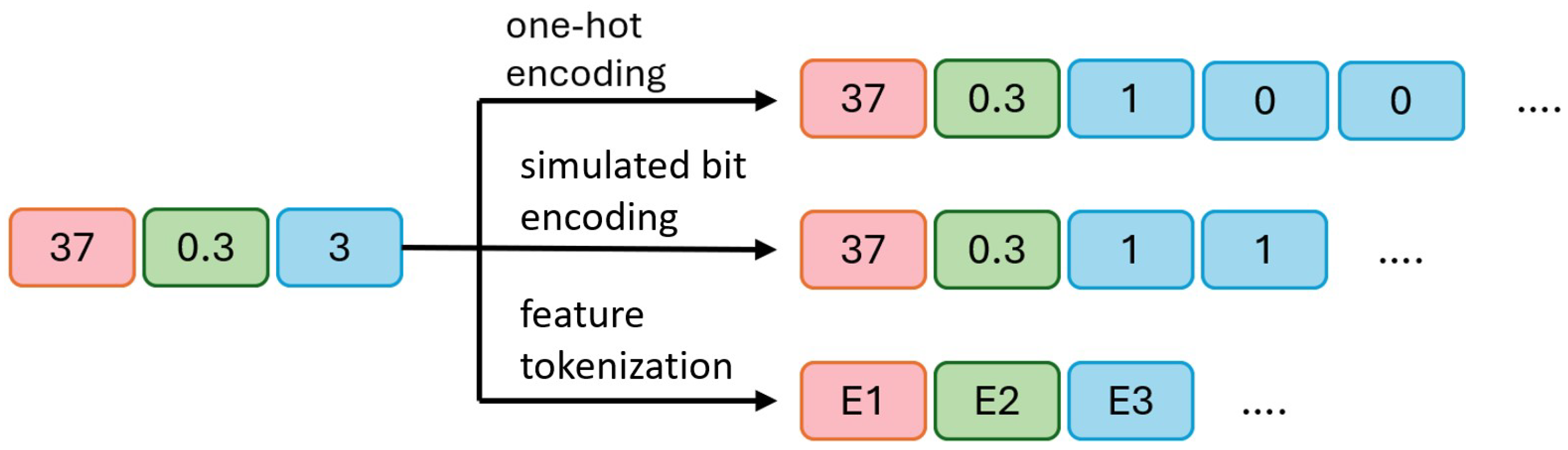 - Handling Categorical Variables: Categorical variables are processed using one-hot encoding, simulated bit encoding, and embedding encoding methods. Among these, the embedding method (feature tokenization/FT) is found to perform better. Thus, categorical variables are processed using FT in the experimental implementation, and this is reflected in Table 2.
