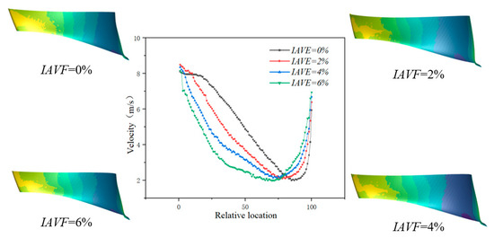 The velocity curve of the pressure surface was extracted along the chord length of the blade with IAVF.