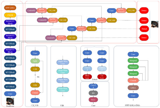 21]. These components are further combined with content-aware upsampling and Bidirectional Feature Pyramid Network with Cross-Stage Partial Units in Improved Bottlenecks (BiFPN + C2f_UIB) [