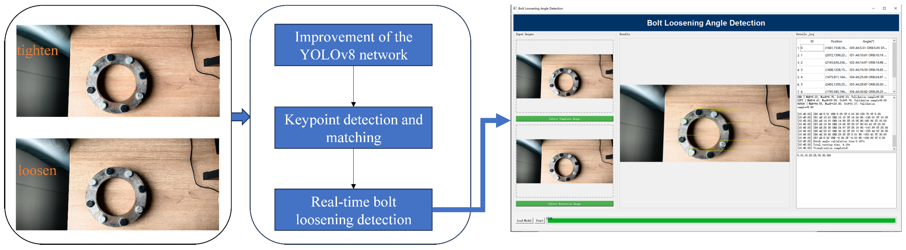 This process does not necessitate additional training, exhibits excellent real-time performance and cross-scenario generalization capabilities, and significantly enhances detection robustness and angular estimation accuracy in complex industrial environments. The system provides stable and efficient technical support for automated bolt loosening detection in structural health monitoring.