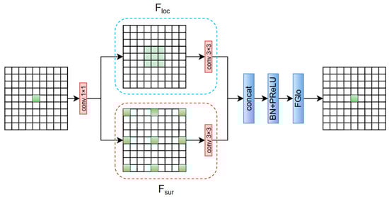 - Surrounding Context Path (F_sur): Dilated convolution (dilation rate = 2) is employed to enlarge the receptive field, thereby allowing for the modeling of spatial semantic information such as object edges and neighboring structures.