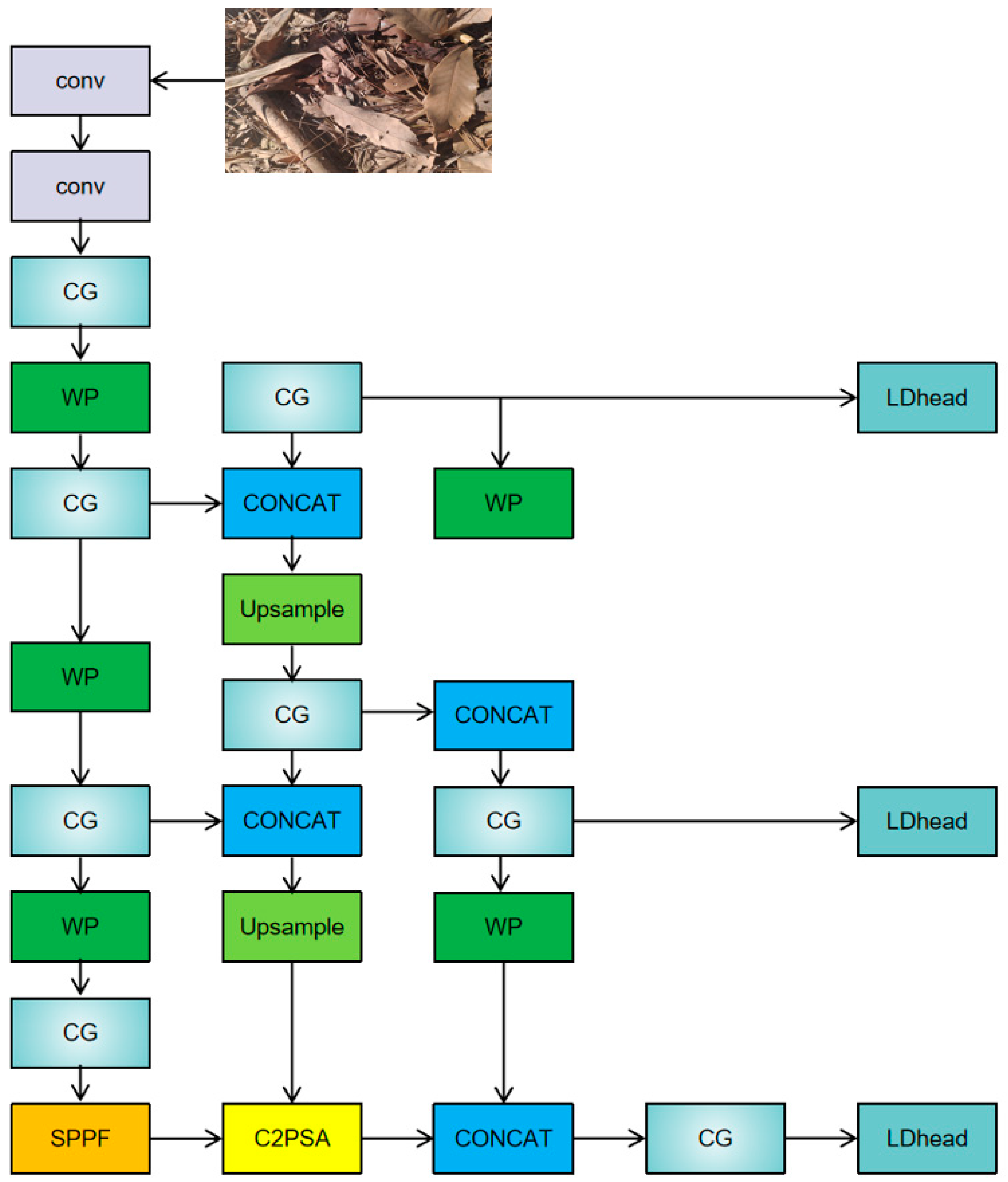 It is important to emphasize that the lightweighting strategy employed in this work does not consist of merely a reduction in network size but rather an advancement achieved through synergistic structural reconfiguration and information enhancement. For instance, Wavelet Pooling compresses spatial dimensions while preserving high-frequency detail information, effectively compensating for the edge feature loss common to traditional pooling operations. The CGBlock module models both local and global contexts via a multipath fusion mechanism, substantially enhancing the semantic representation capability of features. Furthermore, the LDHead detection head combines a scale-guided strategy with depth-separable convolutions, dramatically reducing FLOPs and parameter redundancy without sacrificing multi-scale detection capability.