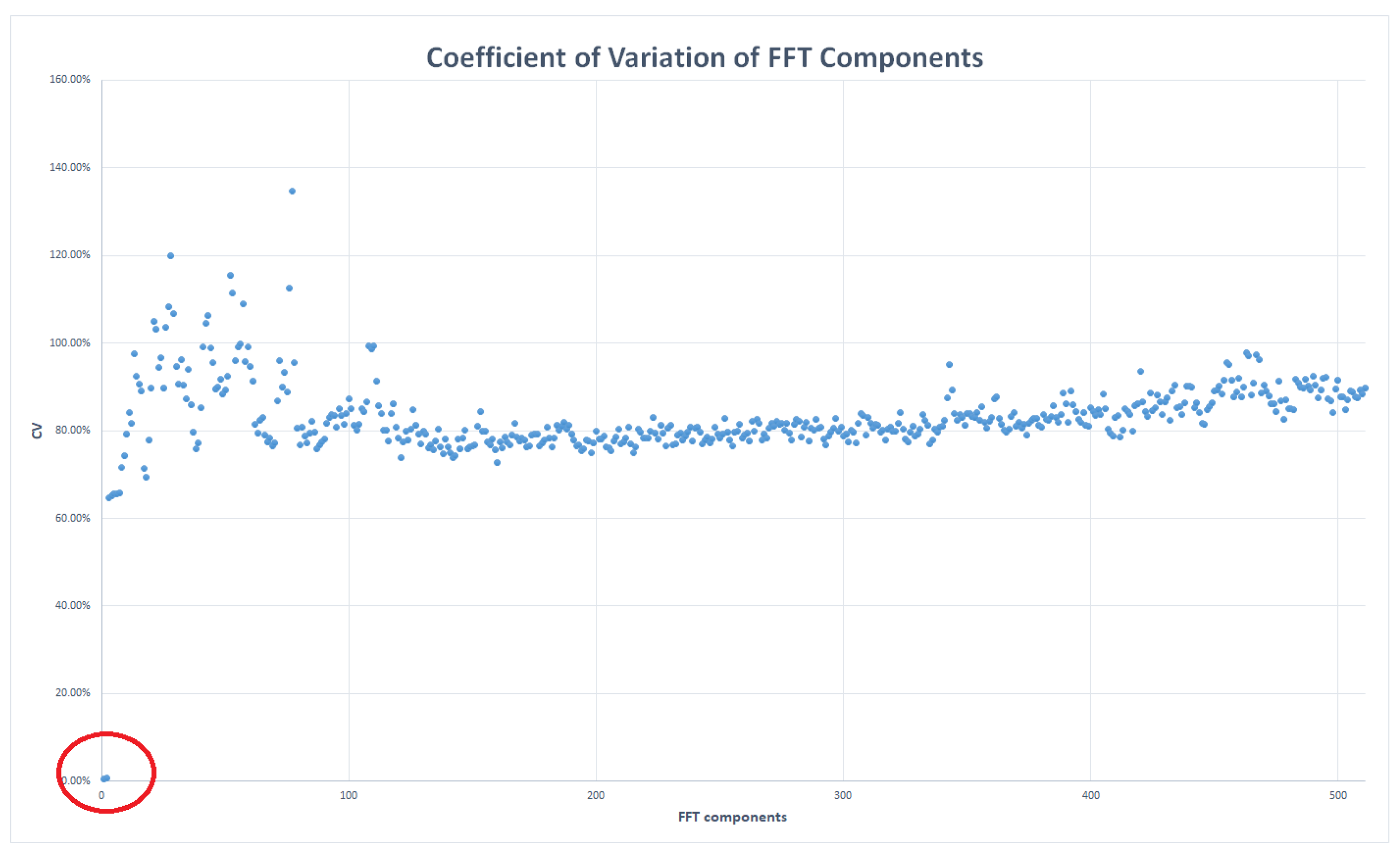 Some FFT components exhibit higher sensitivity to experimental conditions and are therefore useful for distinguishing different water usage scenarios. Components with a coefficient of variation (CV) below 1% are considered invariant and are excluded from the model, whereas components with a CV above 5–10% provide relevant features for classification.