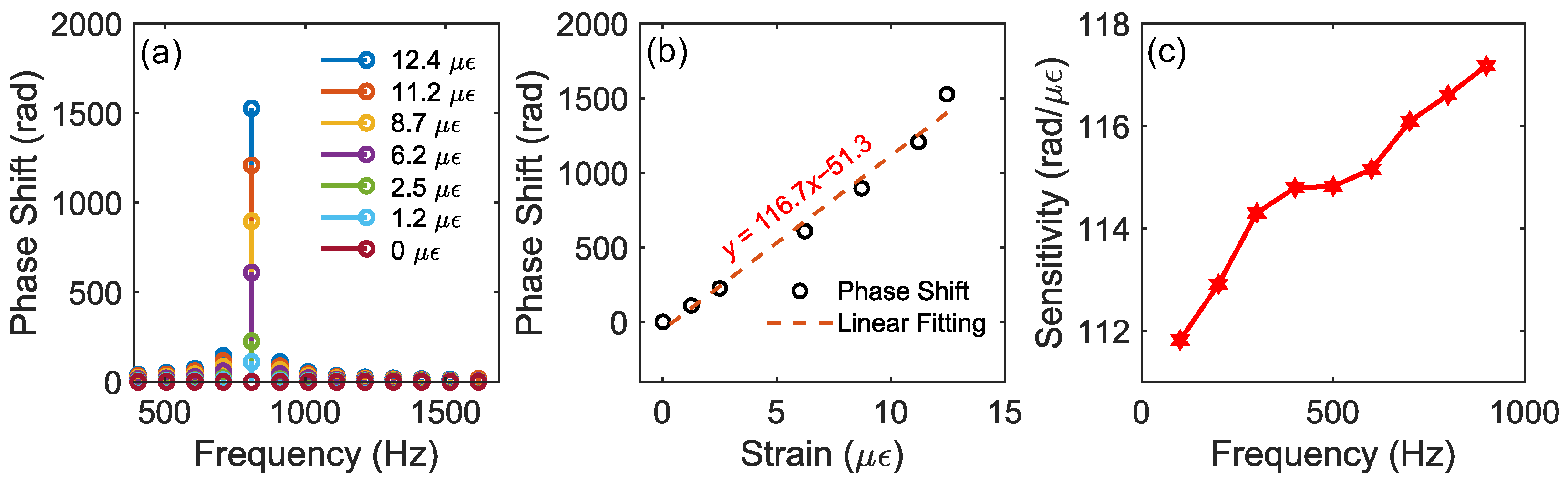 - Zhong, H.; Fu, C.; Li, P.; Du, B.; Du, C.; Meng, Y.; Yin, X.; Liao, C.; Wang, Y. Ultra-linear broadband optical frequency sweep for a long-range and centimeter-spatial-resolution OFDR. Opt. Lett. 2023, 48, 4540–4543. [Google Scholar] [CrossRef]