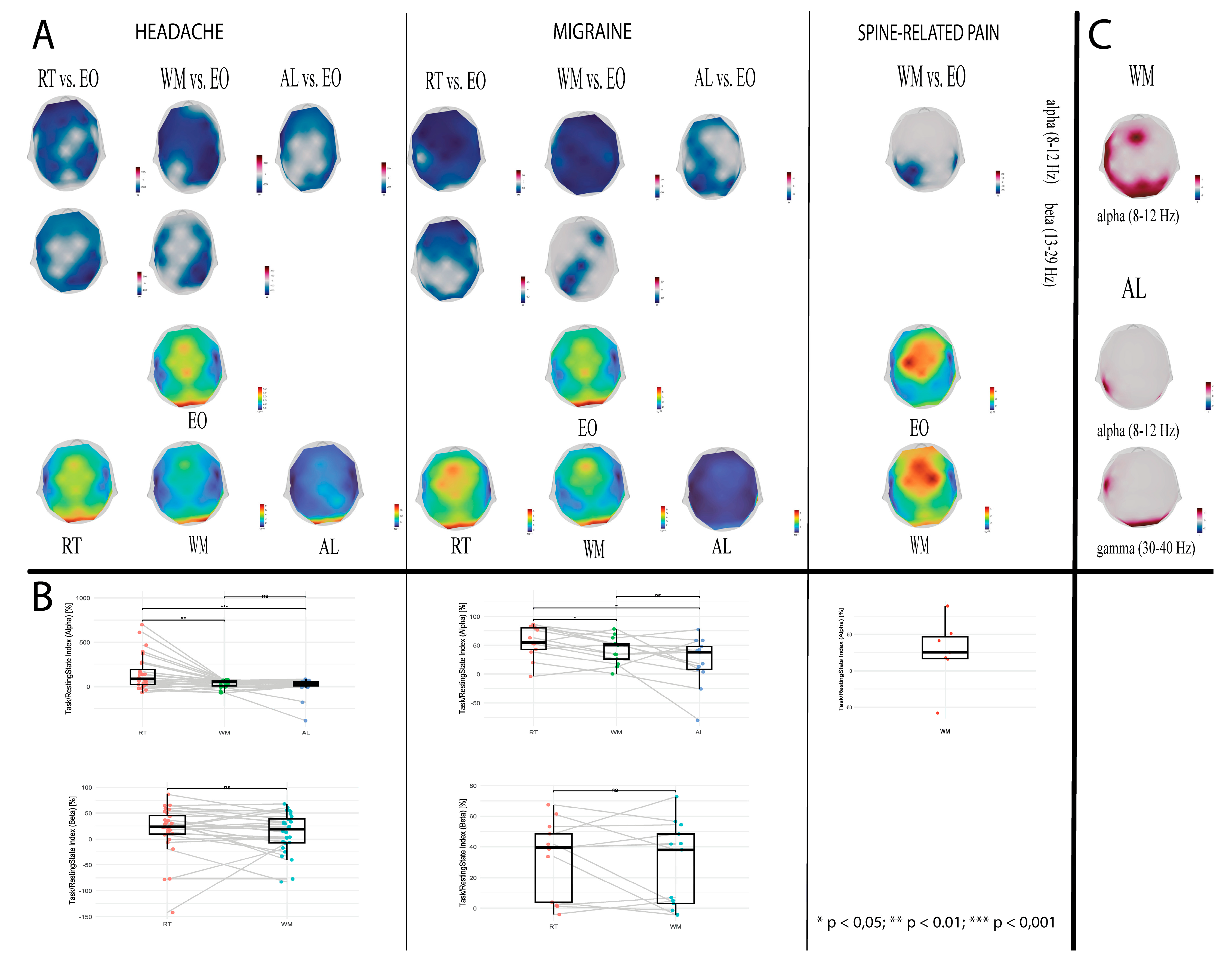 - Kim, S.J.; Yang, K.; Kim, D. Quantitative electroencephalography as a potential biomarker in migraine. Brain Behav. 2023, 13, e3282. [Google Scholar] [CrossRef]