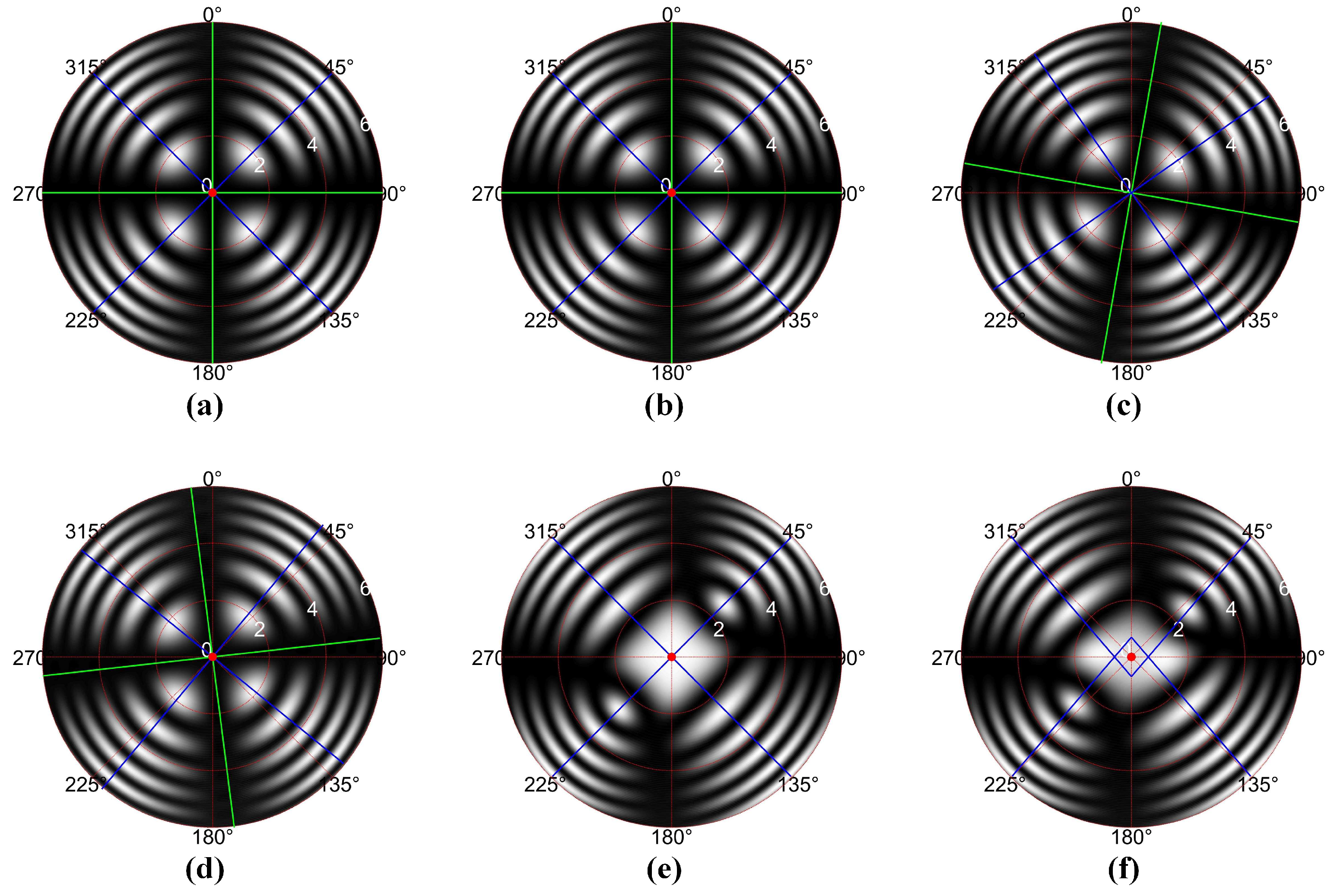 - The conoscopic interference patterns under zero-voltage conditions should be processed to analyze whether the centroids of the white area distribute on the two lines oriented at 45° and 135°. When misalignment occurs, iterative adjustments should be made to the transmission axes of both the polarizer and analyzer.