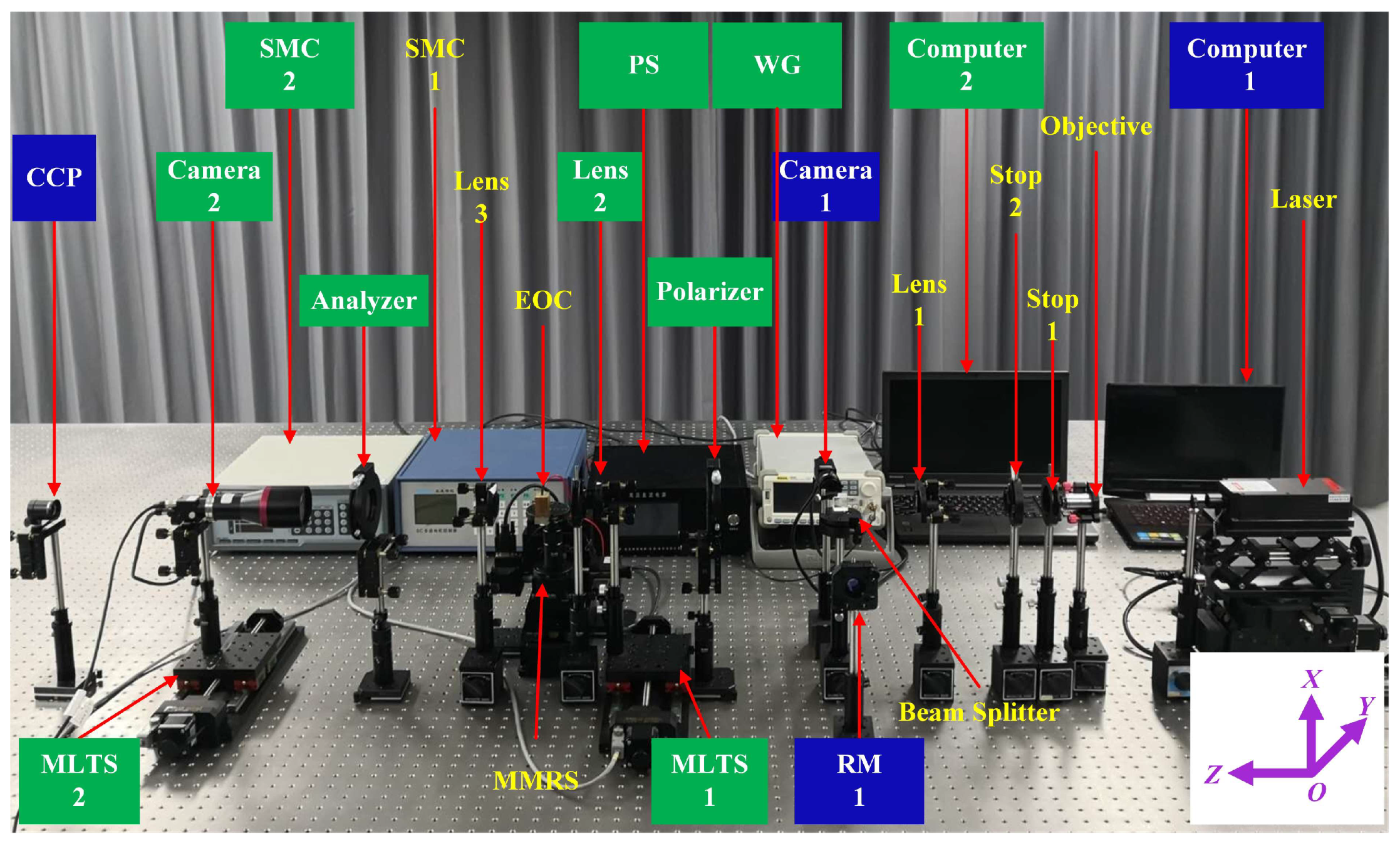 - Transmission axis alignment: The transmission axes of the polarizer (OXP-axis) and analyzer (OXA-axis) are precisely aligned to be parallel with the OX-axis and OY-axis of the optical system, respectively. Specifically, the rotation alignment angle of the polarizer is ζP = 0°, and that of the analyzer is ζA = 90°.