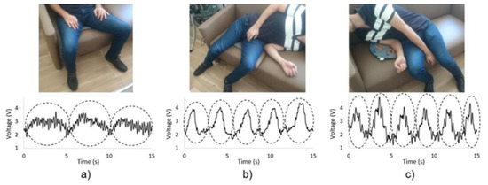 BCG signals of a person (a) sitting on the pressure sensing mat with no inclination, (b) seating on the pressure sensing mat but leaning away from it, and (c) seating next to the pressure sensing mat but leaning over it [27].