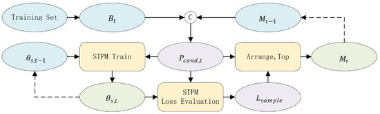 At each training iteration t (where ), the EMS is updated through a two-step process. First, we form a candidate pool, , by combining the images from the current mini-batch with all images from the previous EMS iteration, :