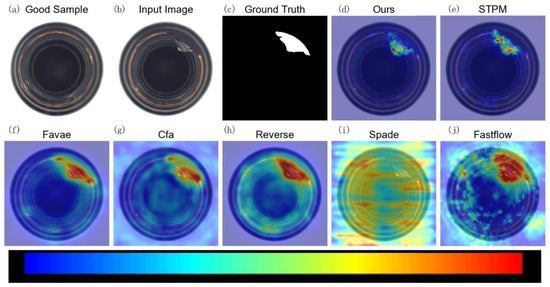 Figure 7 shows a complex anomaly on a sample from the Chew category. While STPM successfully detects the anomaly, MLG-STPM provides a superior anomaly map that is not only clearer but also more concentrated on the actual defect region, thereby minimizing false positives in surrounding normal areas. This precision is particularly crucial in reducing inspection errors.