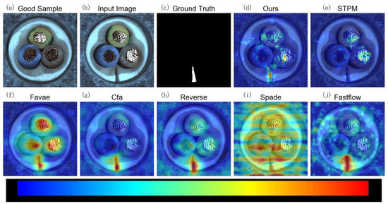 Figure 6, representing the Cable category, further illustrates MLG-STPM’s exceptional ability to precisely localize small and subtle defects. Compared to the baseline STPM, which often produces scattered or weaker anomaly responses, MLG-STPM consistently delivers a clearer and more concentrated anomaly map, a critical advantage for practical industrial inspection.