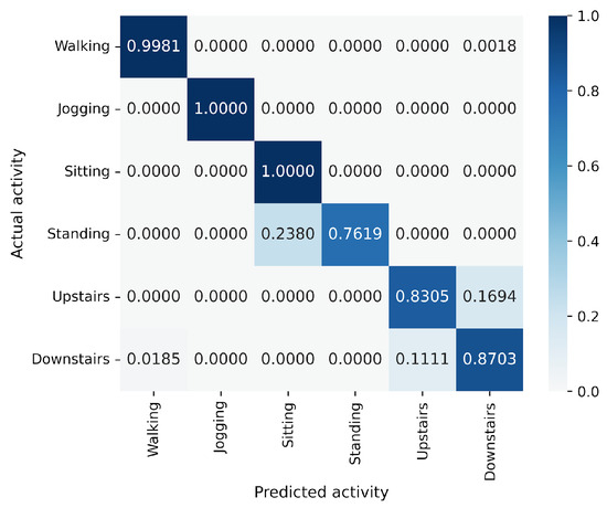 Confusion matrix of models for the WISDM (gMLP (reduction rate = 100%)).