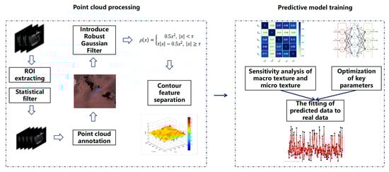 The key to obtaining three-dimensional surface morphology parameters lies in correctly interpreting the point cloud dataset. This section analyzes and filters the collected point cloud data to restore the true surface morphology parameters as much as possible, minimizing the impact of measurement errors on subsequent electrical estimation models. The specific process is shown in Figure 3 for point cloud preprocessing.