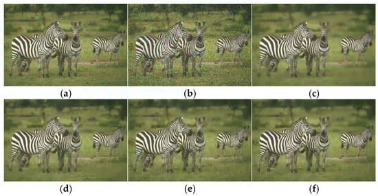 In the process of image acquisition and transmission, the original image is often affected by the noise introduced by the system equipment and transmission channel, which leads to the loss of effective information about the image, and then affects the subsequent image analysis and processing, such as image segmentation, target recognition, edge extraction, etc. Accordingly, image denoising has become a classic problem and a popular research topic in the area of vision applications and image processes. Efficient image-denoising algorithms remove the noise while ensuring that the structural information of the processed image is not altered, which helps in other image-processing tasks, and is further used in remote sensing, medical imaging, surveillance, and other fields [1,2].