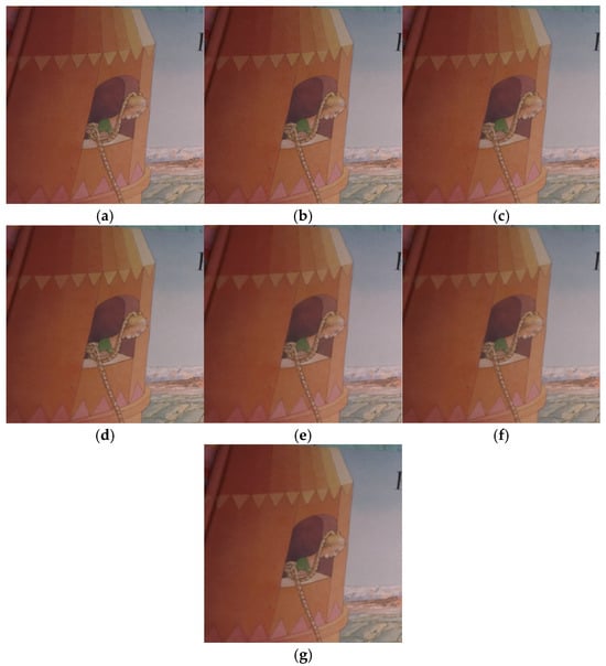 For real image denoising, two real noisy image datasets, SIDD [43] and DND [44], were tested using CBM3D, DnCNN, FFDNet, CBDNet [45], and the algorithm in this paper. The average PSNR and SSIM values of different denoising methods are shown in Table 11. It can be seen that the average PSNR and SSIM of this paper’s algorithm were the best, showing better denoising performance.