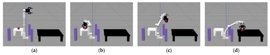 In the experimental setup, the total area of the manipulable space for the robotic arm was established to be 1000 mm × 1000 mm. The gray areas on the map delineate the boundaries of the mobile space, and the cylinders, rectangles, and spheres within the map represent various types of obstacles. In each experiment, a consistent set of parameters is utilized for every algorithm. The experimental parameters are set as follows: the step size is set to 10 mm, the goal threshold is set to 50 mm, the search radius is set to 50 mm, and the maximum number of iterations is set to 10,000. In the P-RRT*, the probability of random sampling is set to 0.9.