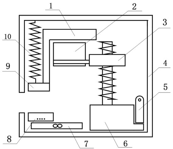 As illustrated in Figure 3, the internal structure diagram of the capillary refilling time measurement device comprises the following components: (1) The first is a blood oxygen and heart rate detection module that is suitable for detecting the blood oxygen and heart rate of the fingertip of the subject to be tested. (2) The second is a pressing structure that is spaced apart from the blood oxygen and heart rate detection module. The pressing structure is suitable for pressing the subject’s finger to be tested and is placed between the blood oxygen and heart rate detection module and the pressing structure. (3) The third is an elastic member connected to the pressing structure. The elastic member is suitable for applying a force away from the blood oxygen and heart rate detection module to the pressing structure. The apparatus comprises a magnetic suction member (4) that is connected to the pressing structure. An electromagnet (5) is connected to the magnetic suction member via a magnetic connection when the electromagnet is powered. A driving component (6) is connected to the electromagnet. The driving component is designed to move the electromagnet and the magnetic suction member, thereby driving the pressing structure to move closer to the subject’s finger to be tested, with the intention of pressing the subject’s finger to be tested.