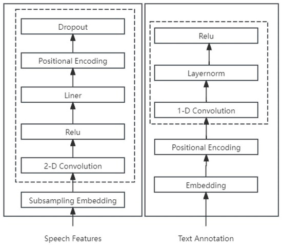 Initially, the embedding layer is employed to convert text labels into dense vector representations, capturing the semantic relationships between words. Subsequently, the same position coding technique used in the speech preprocessing module is applied to encode the positional information of the words. Following this, a 1D convolutional layer is utilized to extract implicit positional information and to capture more nuanced local semantic details. Layer normalization is applied to normalize the model’s output at this stage. Finally, the ReLU activation function is introduced to incorporate non-linearities, thereby enhancing the model’s representational capacity.