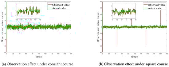 At the same time, it can be seen from Figure 5a,b that the designed ESO can easily observe lumped interference terms in the USV model.