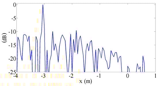 In Figure 8, the results of this simulation are shown as sections along the x and y directions. These plots confirm the results shown in Figure 7. In fact, the proposed procedure’s plot is nearly identical to the reference one, apart from a slight wake of sources in the direction of motion in the pass-by case, due to imperfect de-Dopplerization.
