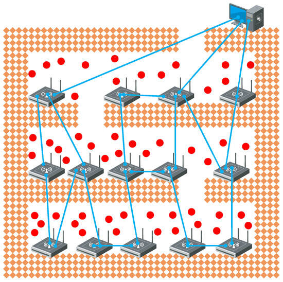 IoT devices are deployed along irregular tunnels in some complex construction environments with multiple tunnels, such as metal mining sites. As shown in Figure 1, in the process of gold mining, tunnels need to be excavated according to the distribution of veins, so the deployment of IoT devices will present a mesh topology along different tunnels.