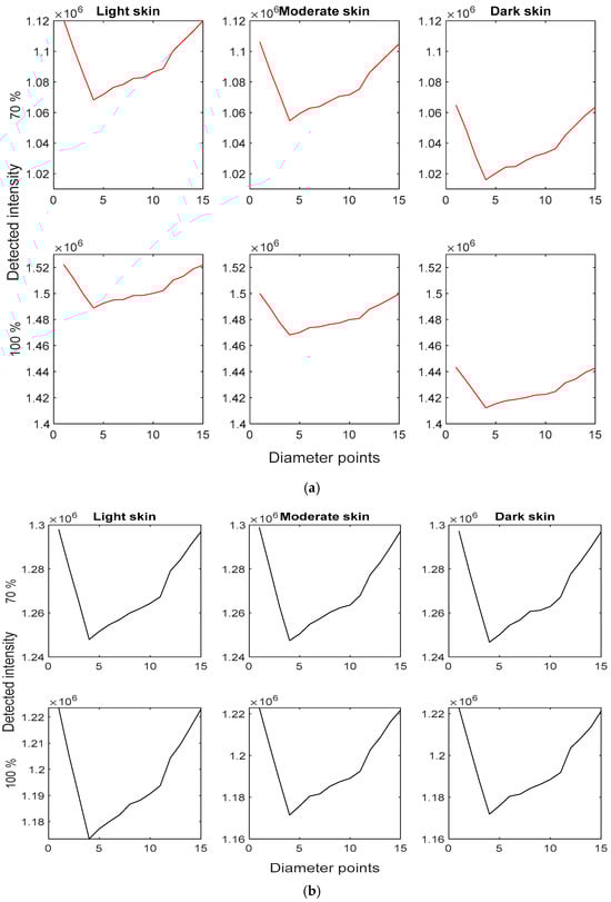 - Al-Halawani, R.; Qassem, M.; Kyriacou, P.A. Monte Carlo simulation of the effect of melanin concentration on light-tissue interactions in transmittance and reflectance finger photoplethysmography. Sci. Rep. 2024, 14, 8145. [Google Scholar] [CrossRef]