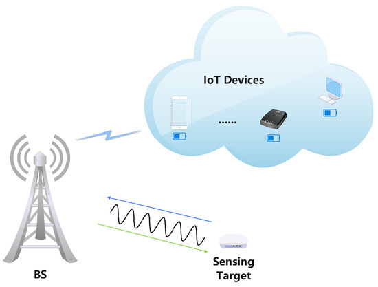 Illustration of the integrated IoT devices and sensing target communication model.