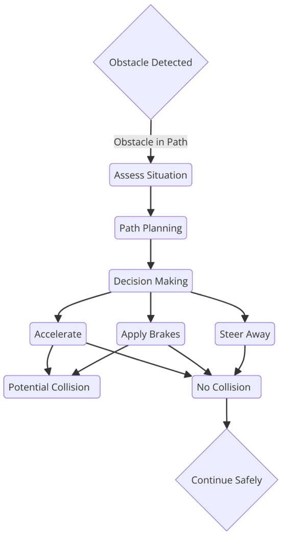 Autonomous vehicles must have collision avoidance systems to prevent accidents and ensure safety. These systems rely on sensors, algorithms, and communication technology to detect and respond to potential collision risks. By proactively identifying and evading obstacles, they help autonomous vehicles navigate safely, as shown in Figure 1. Implementing robust collision avoidance systems is crucial for gaining public trust, improving road safety, and enabling the widespread adoption of autonomous vehicles. There are various technologies and methods used for collision avoidance in autonomous vehicles.