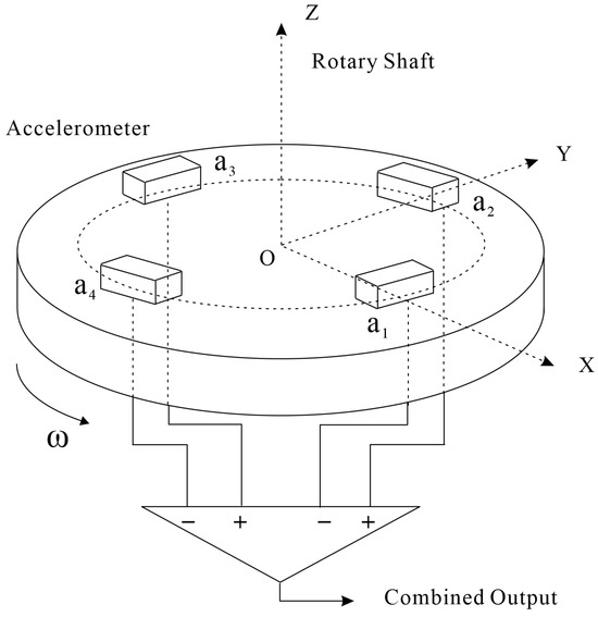If the inspection centroid of accelerometer 1 at time is located on the positive semi-axis of the x-axis, then . To eliminate the effect of common-mode acceleration , , the output relative to the accelerometer is summed as follows:
