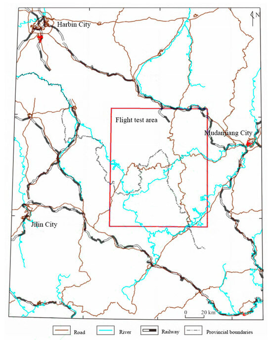This paper conducted a flight experiment in the airborne gravity gradient test area (Figure 16), which is located in the southern section of the Zhangguangcai Ridge, west of Mudanjiang City in Heilongjiang Province.