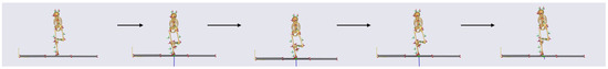 By importing the data collected by the BTS CAPTURE infrared capture software into the Anybody 7.4 software, we selected the frame numbers for one cycle of the single-leg jump performed by the children and adjusted the lower limb gait model based on their morphological data. Through system parameter optimization, kinematic, and inverse dynamic analysis, we obtained the joint angles, joint torques, muscle forces, and ground reaction force data for the supporting-side lower limb during one movement cycle.